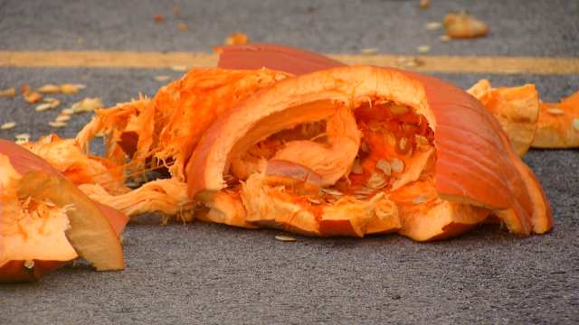 Shit. I grab him, still flailing at the pumpkin on the sidewalk. We flee into the cover of night, leaves crunching beneath our less than stealthy footsteps. My own dog is at the window barking his head off. Trenton can’t stop giggling.